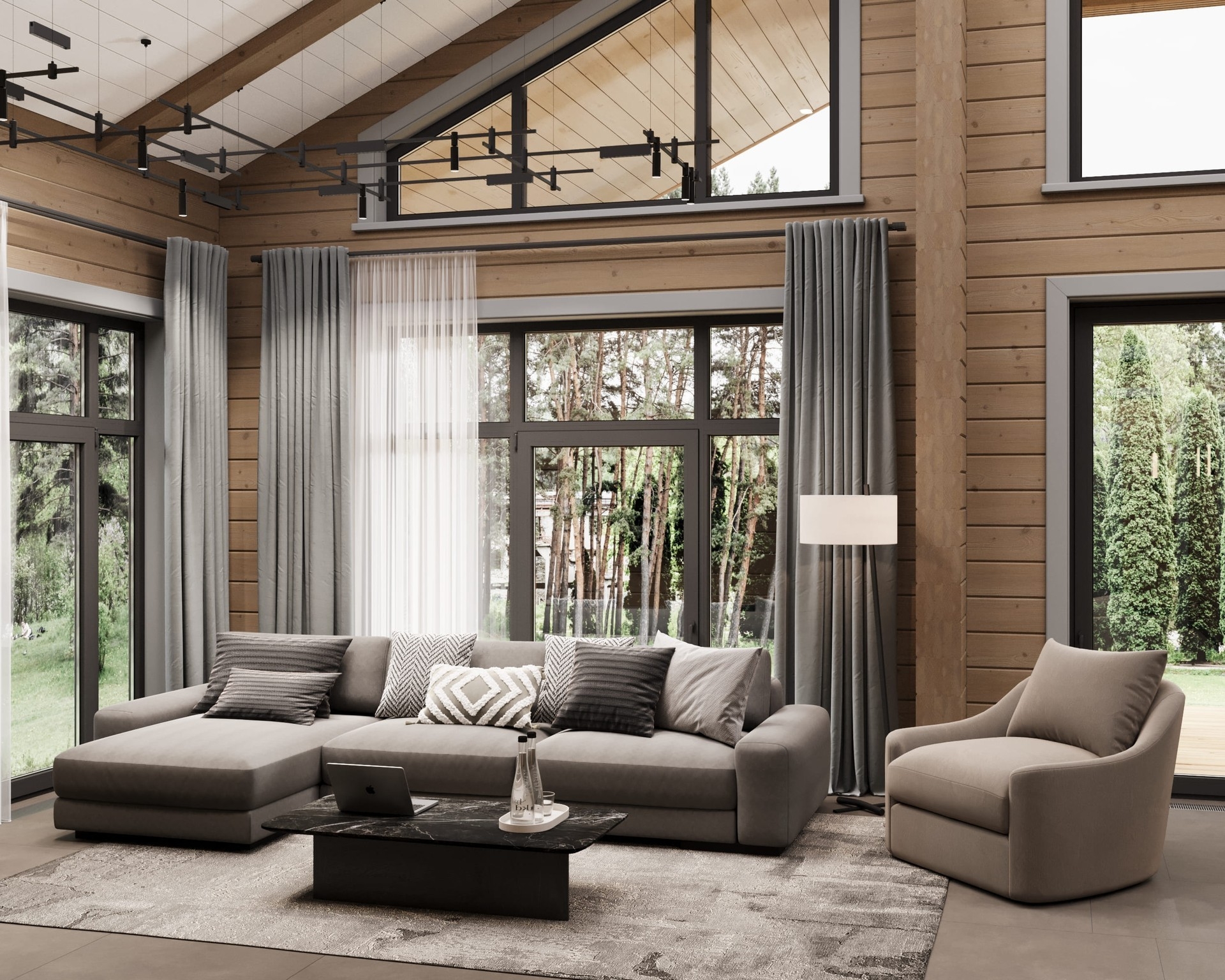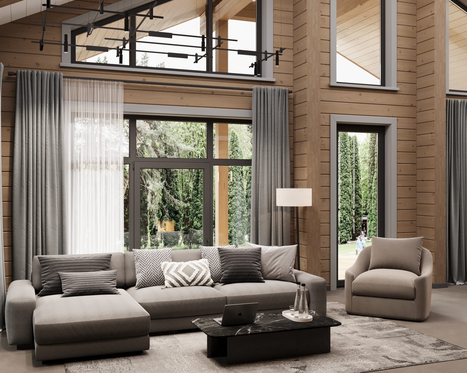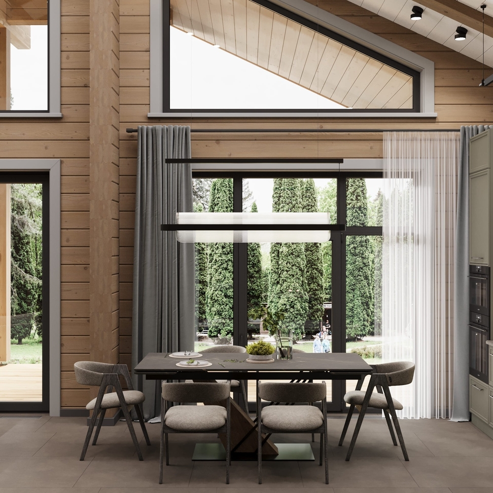 Наш проект — это не просто загородный дом, а органичное продолжение природы Алтая. Мы стремились создать пространство, где границы между интерьером и окружающим ландшафтом стираются, а каждый элемент напоминает о красоте и силе гор.